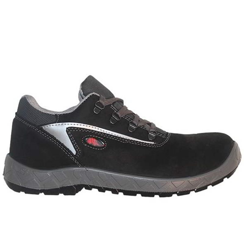 Shoes low in black leather with steel toe cap resistant to 200J, steel plate,footbed in eva foil. Simple lines and respect of the fees standard dictated by the standards of the safety for the shoes of the classic line, the classic par excellence, made with materials of origin Italian.