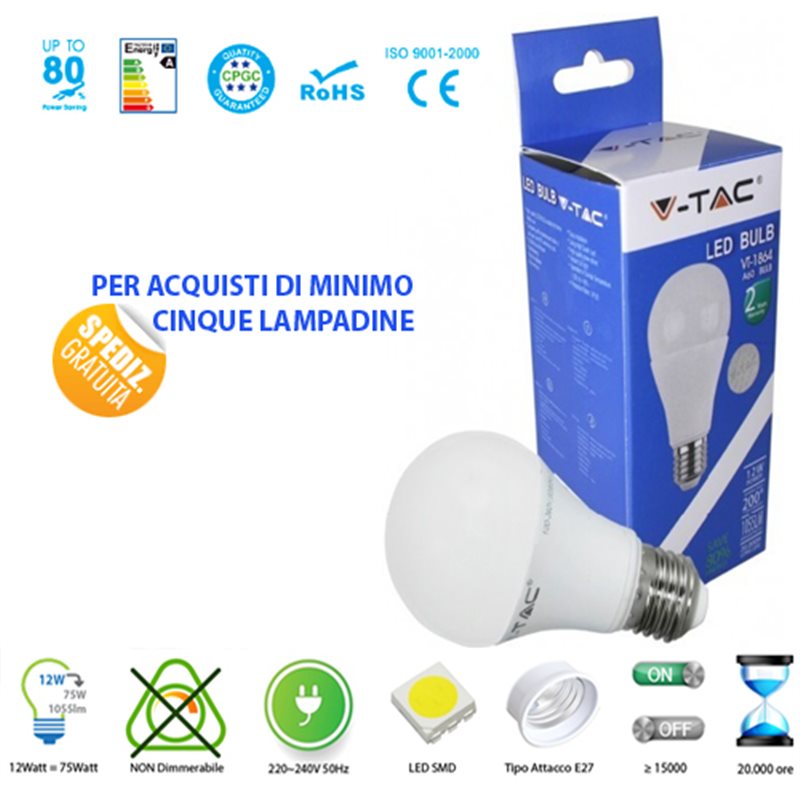 LED light BULB, V-Tac E27 12W LIGHT LAMP WARM - NATURAL - COOLRecipient :