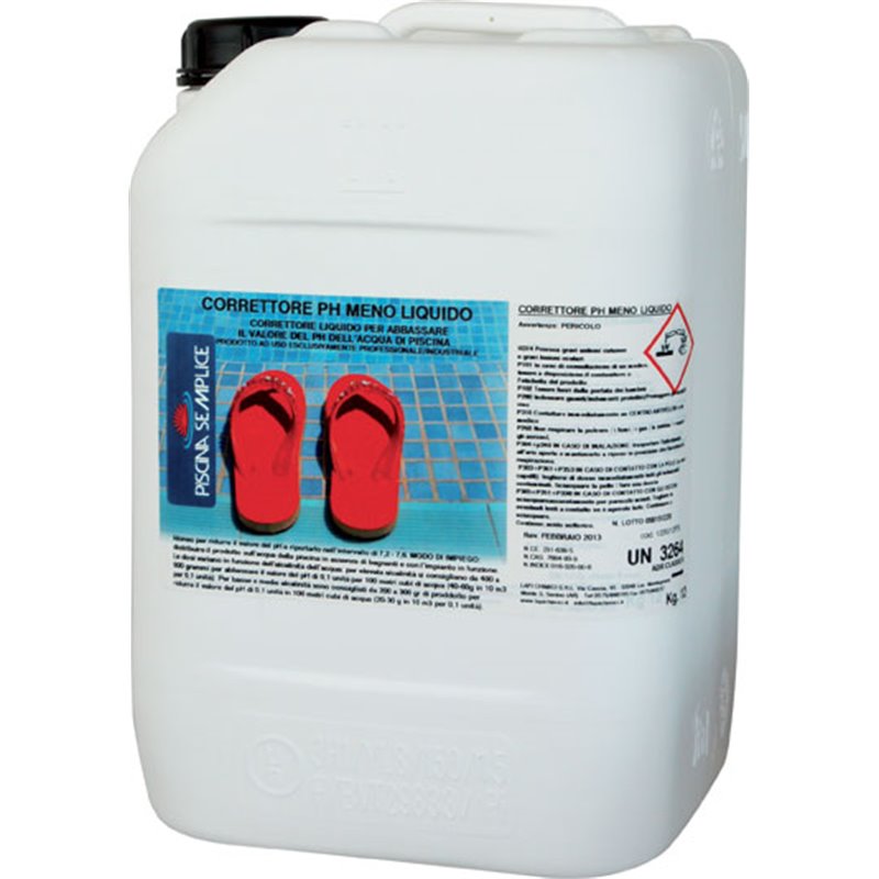 Prodotto liquido che consente di abbassare il livello del pH delle acque di piscina. Inoltre svolge una funzione stabilizzatrice del PH grazie agli agenti ad effetto tampone contenuti. Utilizzo: Ml.50 circa ogni Mc. 10 per abbassare il PH di 0,1.