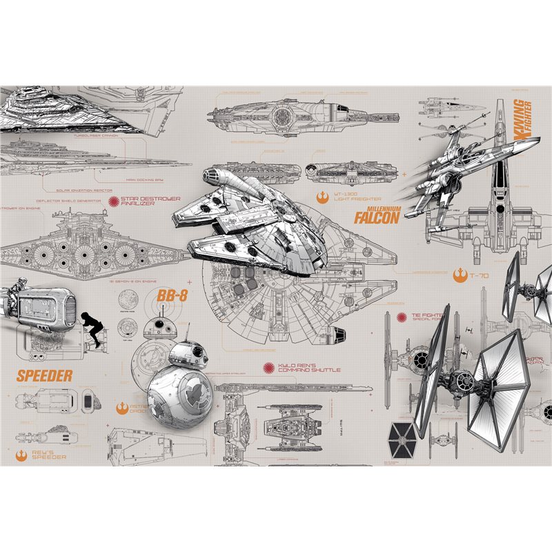 Il pannello definitivo di altissima qualità marca Komar, numero uno della produzione di poster murali e gigantografie, raffiguranti X-Wing Fighter, Millennium Falcon, BB-8 e Speeder. A bordo di questi astronavi, Rey si precipita attraverso il deserto, Poe Dameron sfreccia attraverso l'acqua e Han Solo fluttua attraverso la stratosfera, per tutti gli appassionati di GUERRE STELLARI.