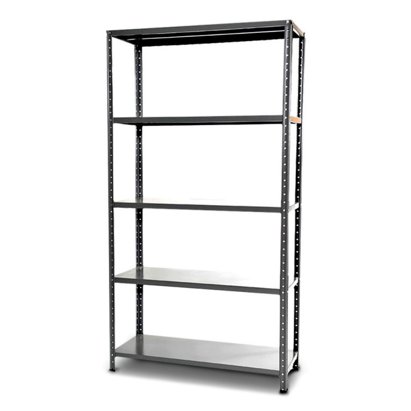 Scaffale metallico con lamiera verniciata in kit ad incastro con aste intere, 5 ripiani con rinforzo, compreso di bulloni e piedini.
