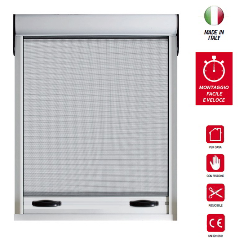 ZANZARIERA A RULLO SPECIAL FRIZIONATA IN ALLUMINIO RIDUCIBILE PER FINESTRE IN KIT