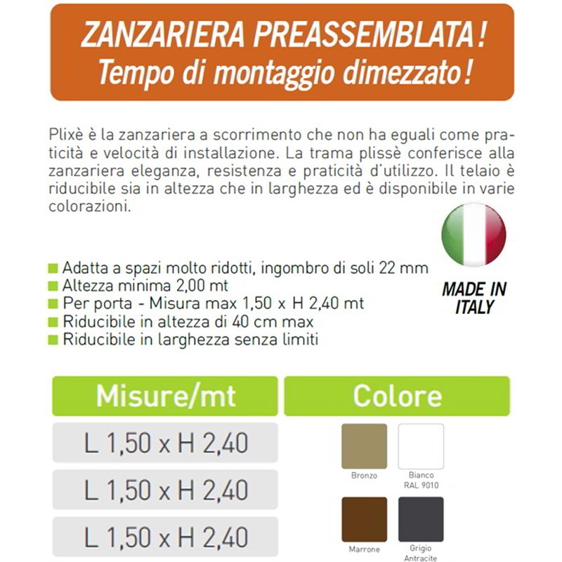 ZANZARIERA SCORRIMENTO LATERALE PORTAFINESTRA PLISSETTATA IN KIT MADE IN ITALY